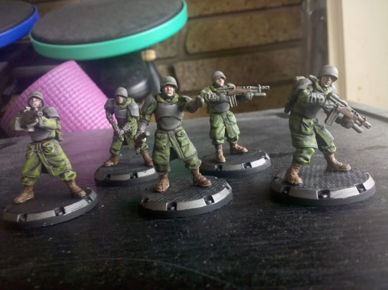 Sorry been busy with stuff on Thursdays to be able to post on Fridays but, today we'll show BlkDymnd from the FFG forums Captain America he made out of an extra Bazooka Joe he had and the rest of his forces.